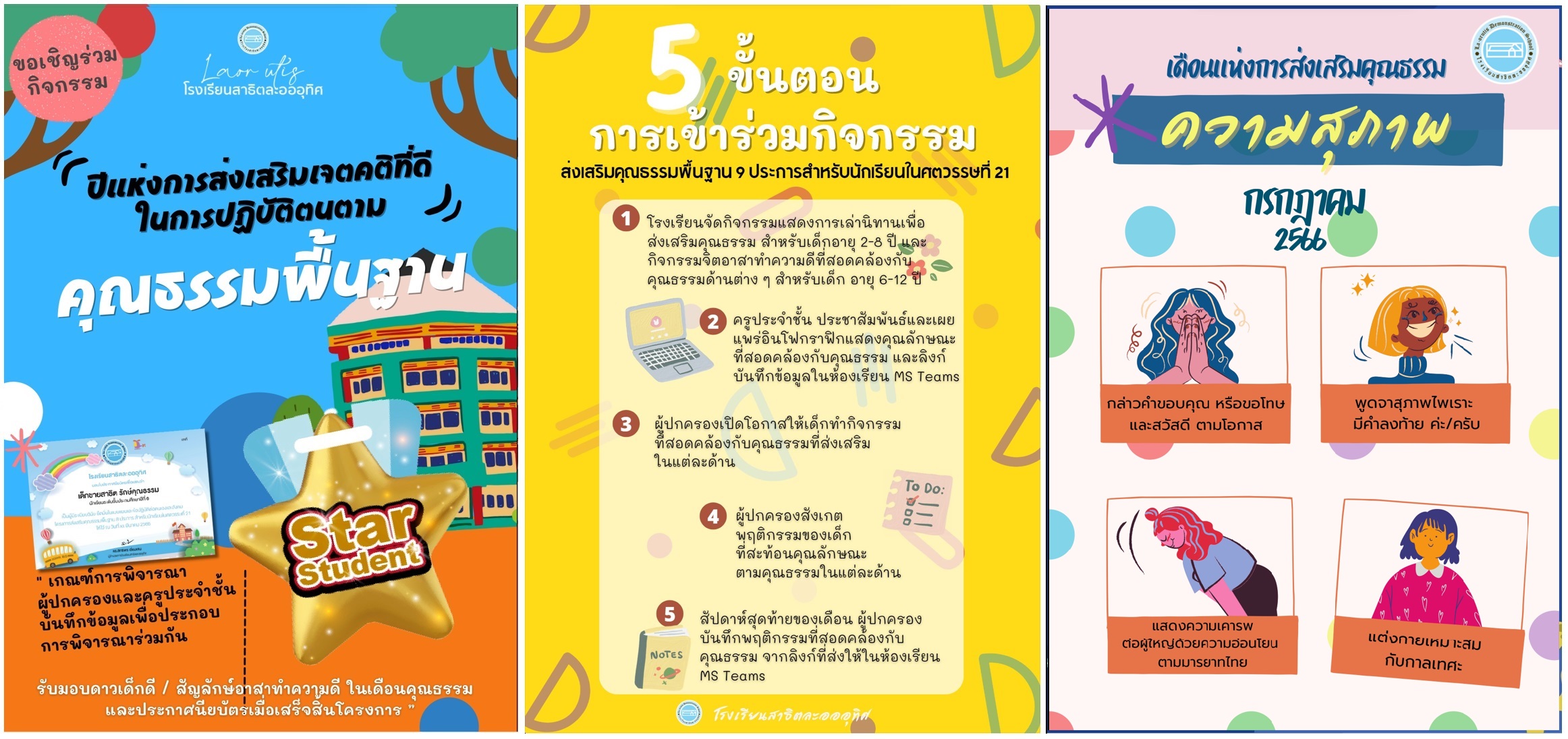 กิจกรรมส่งเสริมคุณธรรมพื้นฐาน โรงเรียนสาธิตละอออุทิศ กรุงเทพมหานคร July 6, 2023July 6, 2023 la-orutis admin ข่าวประชาสัมพันธ์, ประกาศ, ประกาศสำคัญ, ผู้ปกครอง la-orutis admin