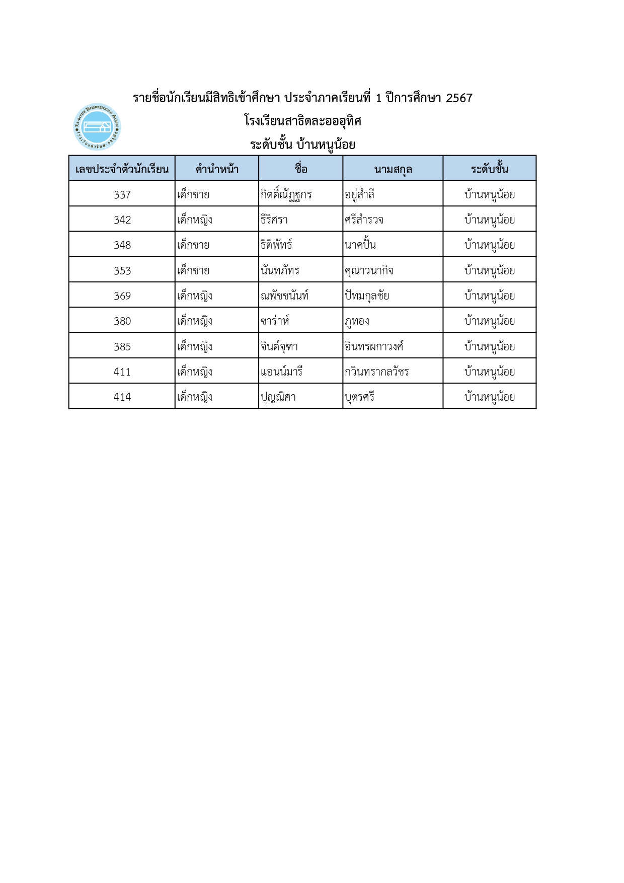 รายชื่อนักเรียนมีสิทธิเข้าศึกษา ประจำภาคเรียนที่ 1 ปีการศึกษา 2567 April 20, 2024April 20, 2024 la-orutis admin ว่าง ระดับชั้น บ้านหนูน้อย la-orutis admin
