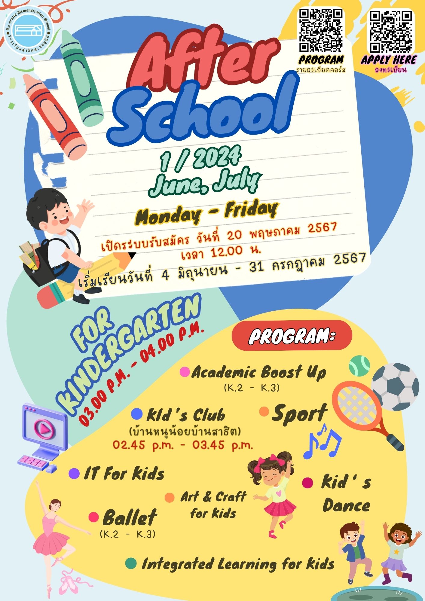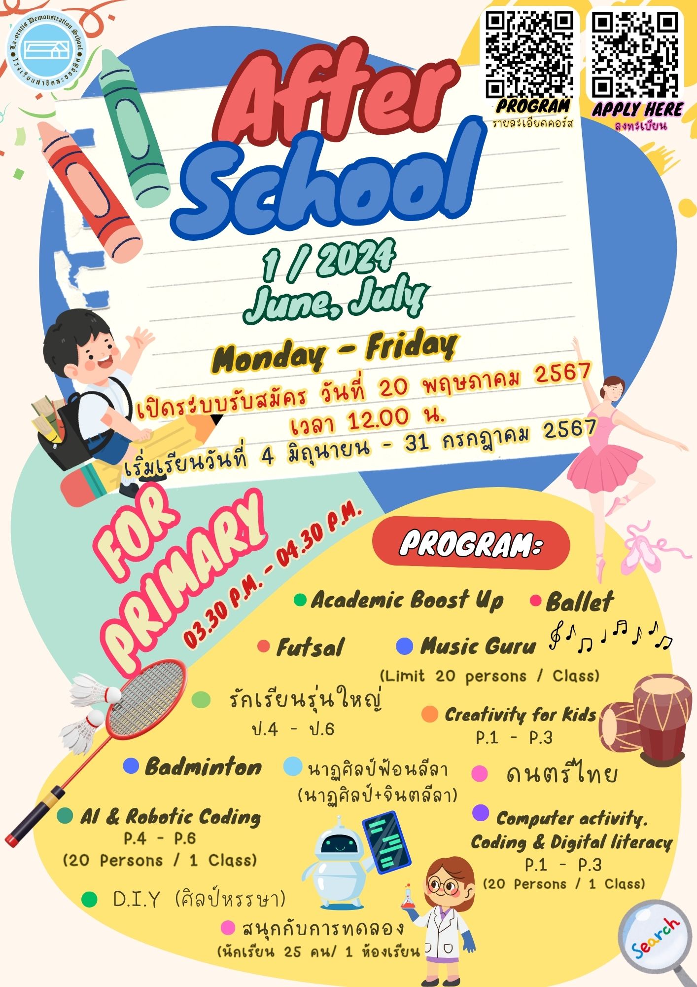 ประชาสัมพันธ์โครงการ After School ประจำภาคเรียนที่ 1 ปีการศึกษา 2567 เดือนมิถุนายน และเดือนกรกฎาคม 2567